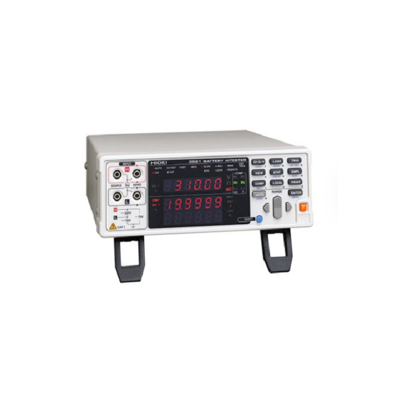 Hioki benchtop battery testers support simultaneous high-speed measurement of internal resistance and battery voltage for the ever-expanding production lines of increasingly larger lithium-ion low resistance batteries, and other battery packs for high voltage applications. The 3561 is a wide range 300 mΩ to 3Ω/20V DC battery internal resistance tester for high-speed production line testing of small secondary batteries.