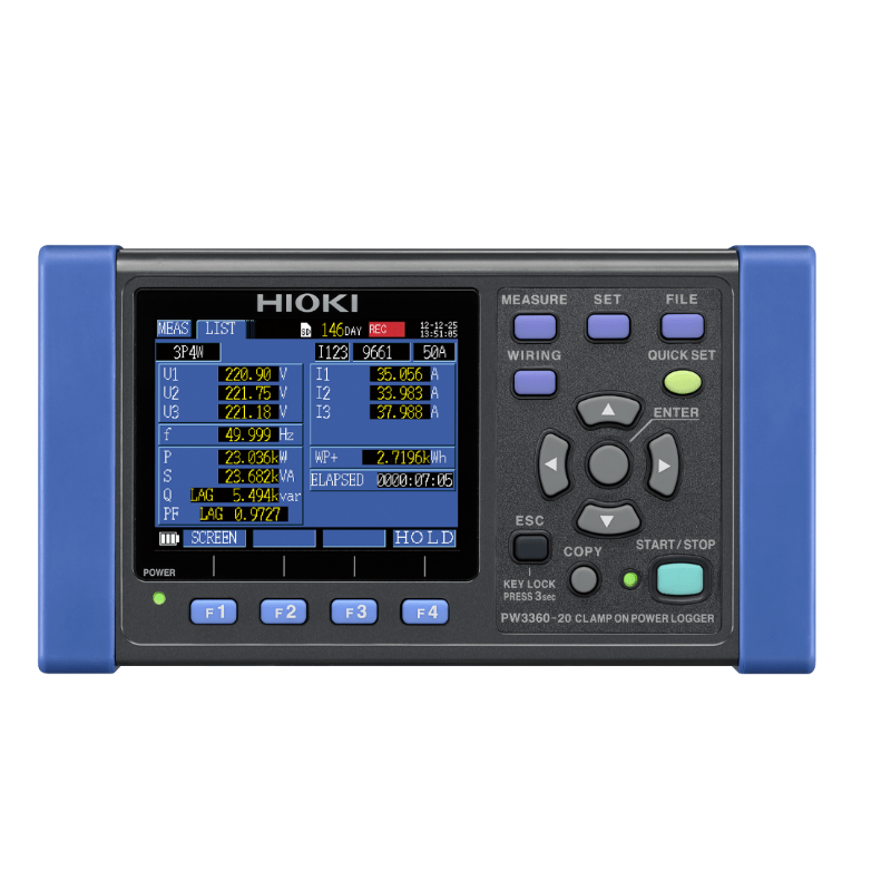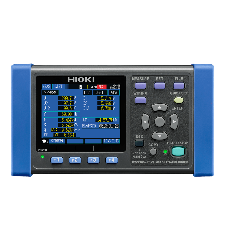 HIOKI Clamp On Power Meters are multi-channel power measuring devices utilizing clamp sensor input to accurately and safely measure power on single-phase to three-phase lines. The PW3360 compact 3-Phase 4-Wire energy loggers monitor power demand and other power parameters to aid in energy audits and validate energy saving measures