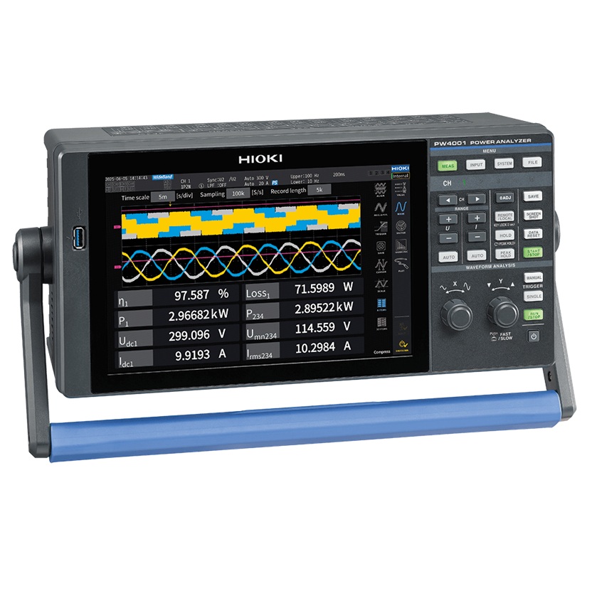 Hioki benchtop power meters and power analyzers are best in class power measuring instruments for measuring single to three-phase lines with a high degree of precision and accuracy. The PW6001 is Hioki’s flagship power analyzer, featuring high accuracy, wide band, and high stability for measuring electrical power from DC to inverter frequencies, providing maximum of 12 channels (*1) to support single- and three-phase inverter motor system measurements and next generation devices such as silicon-carbide (SiC) inverters.