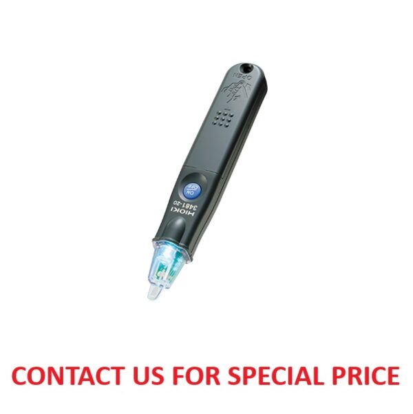 Hioki leads the industry in non-metallic contact test and measurement technology that promotes safety on the worksite. The Hioki 3481 is a pen-style, non-metallic contact voltage detector with a bright LED light that promotes safety and work efficiency even in dim worksites. When voltage is detected, the LED lights red along with an audio signal.